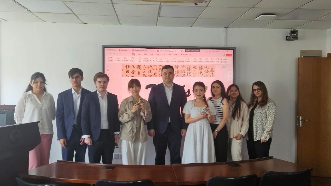 下午,经济学院为TSUE师生组织了中国书法文化体验活动,邀请美术学院的师生讲解中国传统书法艺术,并指导来访的乌方师生执笔挥毫,感受中华传统文化魅力。Abdusalomova Nodira教授感叹:“书法不仅是艺术,更体现了东方哲学,这种文化交流是学术合作的重要补充。”