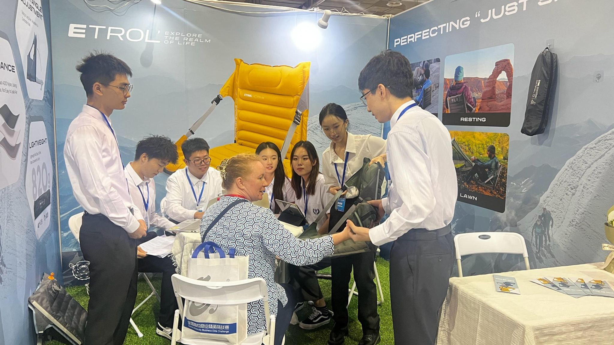 竞赛以2025年中国(宁波)跨国采购商品洽谈会暨2025年中国(宁波)品牌商品博览会形式举行。6月7日上午,比赛正式拉开帷幕。参赛队伍以中小企业名义,模拟了参展计划书撰写、展位海报设计与商品陈列、新产品发布会和商贸配对贸易谈判等多个环节。这不仅考验选手们的专业知识,更锻炼了他们团队协作、沟通表达和应变能力。beat365唯一官网代表队在产品介绍和商贸配对贸易谈判环节中展现出高水平的英语沟通能力和专业国贸知识,获得评委一致好评。在产品发布会环节,参赛学生以积极饱满的状态,创意展示产品卖点。最终,ETROL air chair队荣膺特等奖,ZeekLand Foldable Solar Camping Light队 与 Max Pump 3充气泵队双双斩获一等奖!由一年级国际学生组成的LikeMed AED队获二等奖,展现了悉尼工商学院中外学生融合培养的积极成果。