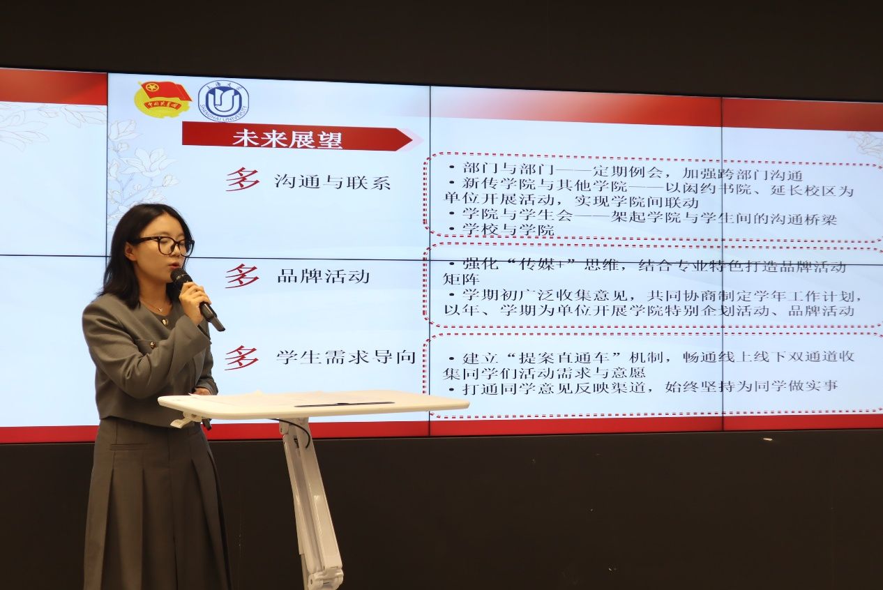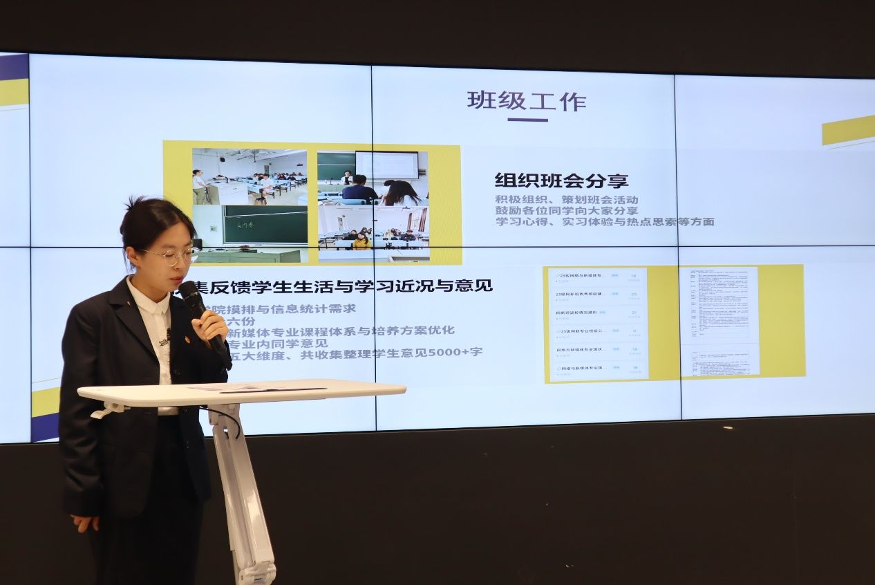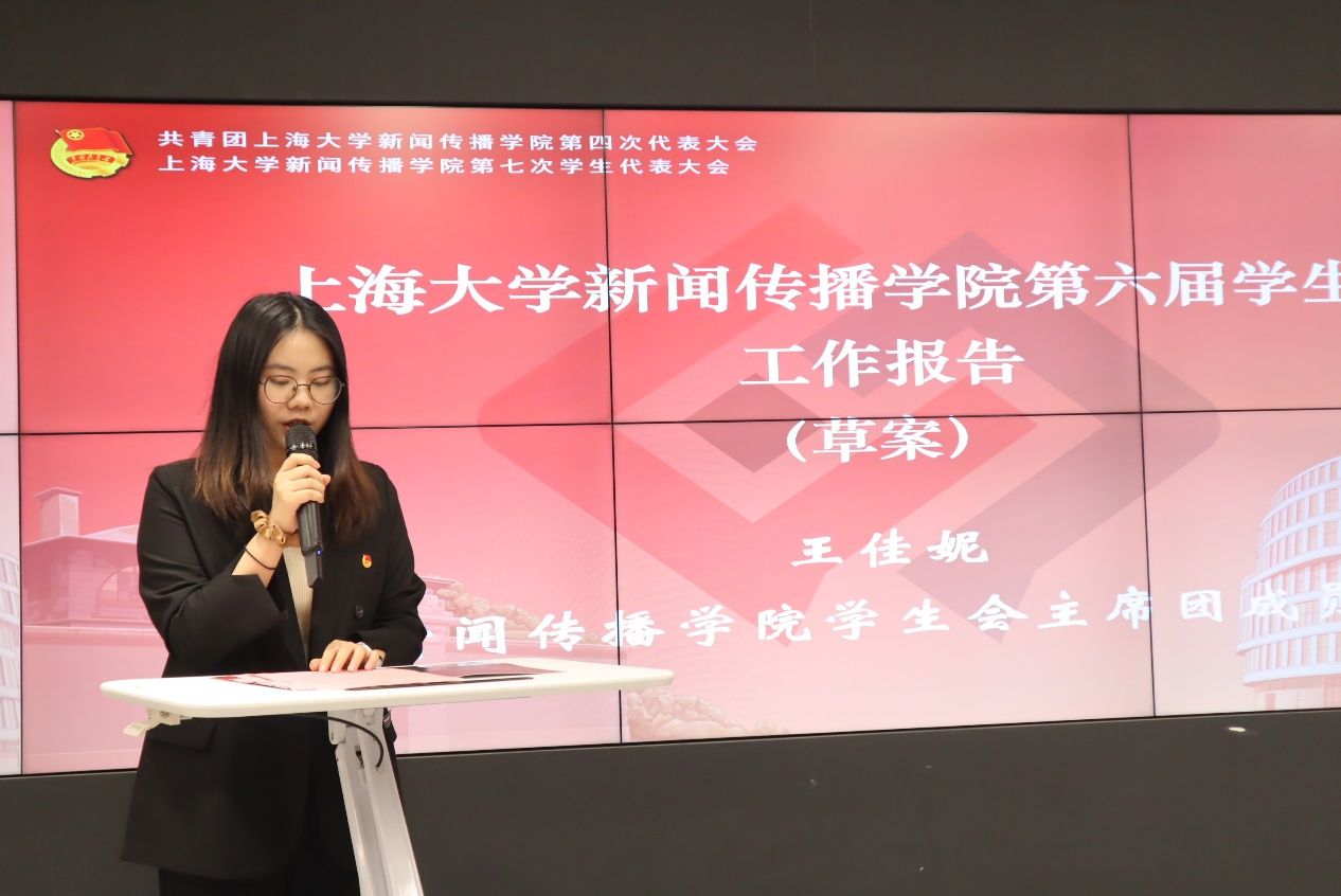 新闻传播学院团委书记赵琳、研究生团总支书记赵梦杰、学生会主席团成员王佳妮分别代表学院团委、研究生团总支和学生会作工作报告,全面总结了学院团学组织在思想引领、组织建设、品牌活动、服务青年等方面的工作成效。