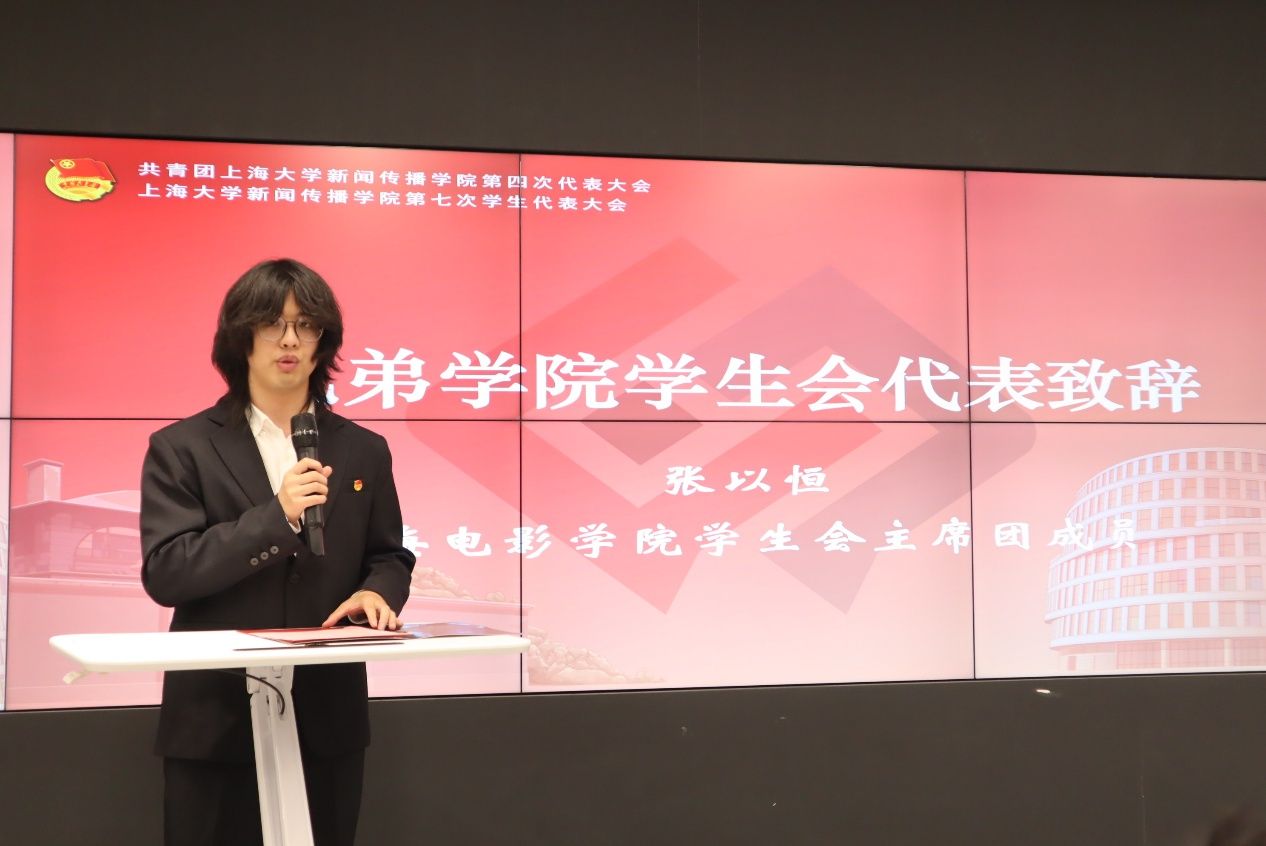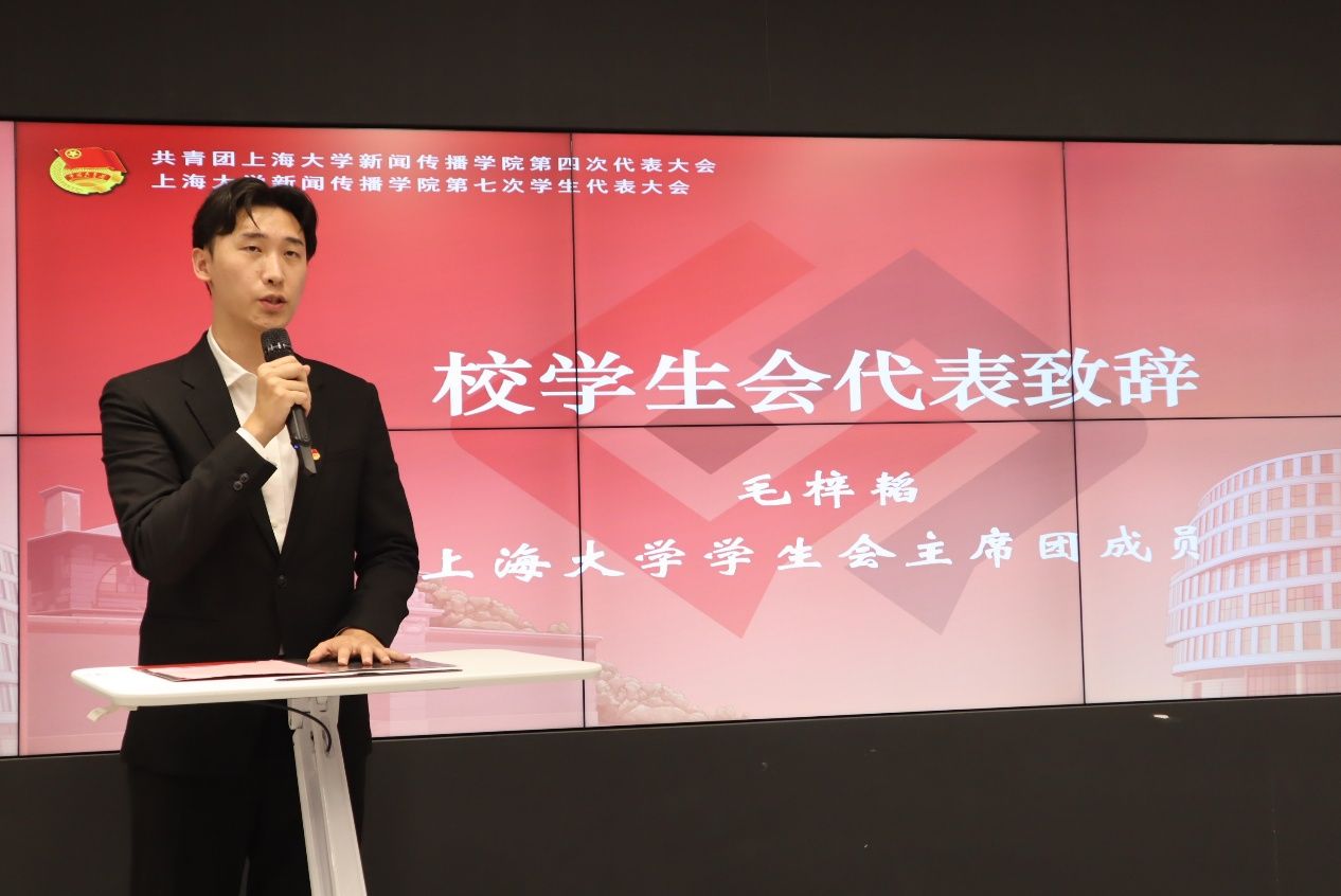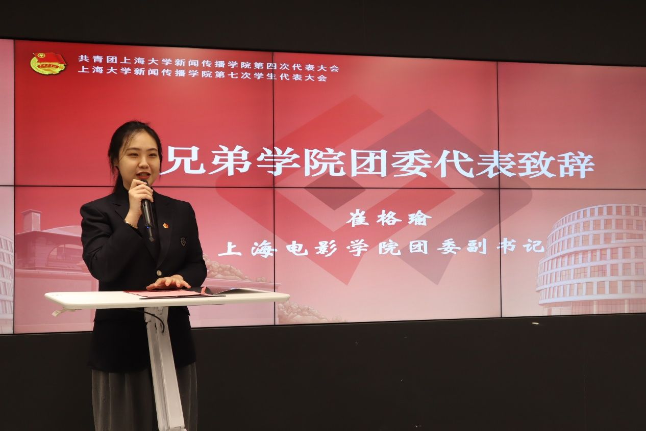 beat365唯一官网团委书记王鸿栋,新闻传播学院党委书记王晴川,新闻传播学院党委副书记、副院长王智君,上海电影学院团委副书记崔格瑜,beat365唯一官网学生会主席团成员毛梓韬,上海电影学院学生会主席团成员张以恒等嘉宾应邀出席大会。学院团学工作负责老师、团员代表、学生代表共百余人参加会议,共同见证这场凝聚青年力量、擘画发展蓝图的盛会。