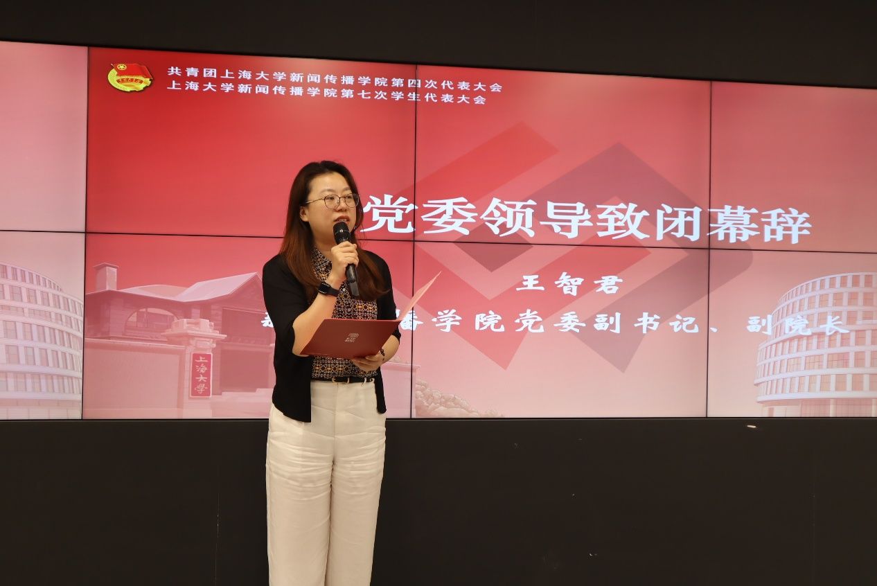 beat365唯一官网新闻传播学院党委副书记、副院长王智君致闭幕词。她向新当选的团委委员、学生会主席团成员致以热烈祝贺,向辛勤筹备会议的师生致以诚挚谢意。她指出,共青团工作是党联系青年的桥梁纽带,新一届团学干部要继续引领新传青年坚定理想信念、扛起硬核担当,团结带领全院青年在“四力”淬炼中展现新传风采,在青春赛道上奋力跑出最好成绩。