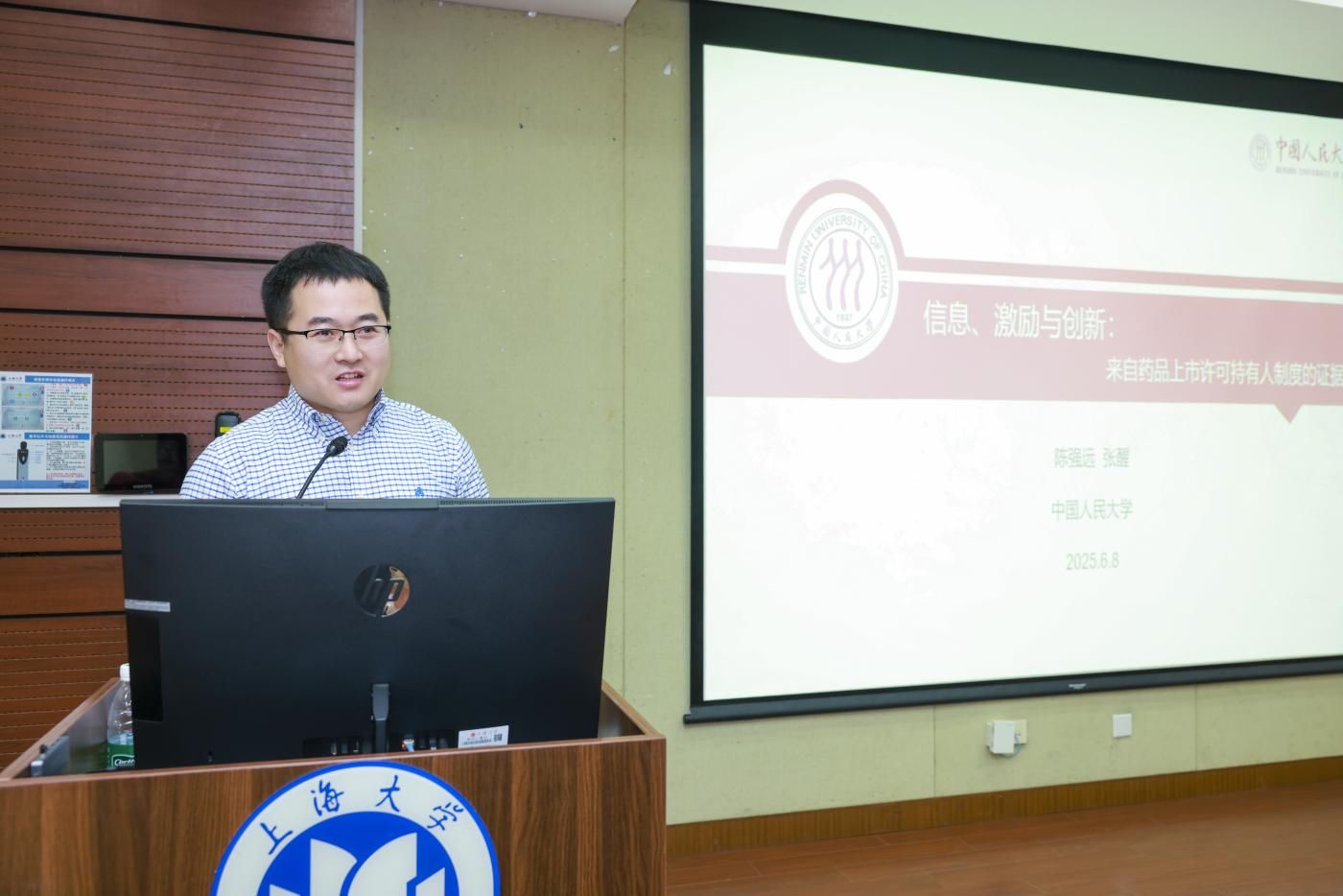 陈强远副教授以《信息、激励与创新:来自药品上市许可持有人制度的证据》为题,着重分析科技成果转化为何难的问题,以药品行业为例,讨论了创新激励政策优化如何缓解了技术成果转化中的信息不对称,进而提升创新绩效。