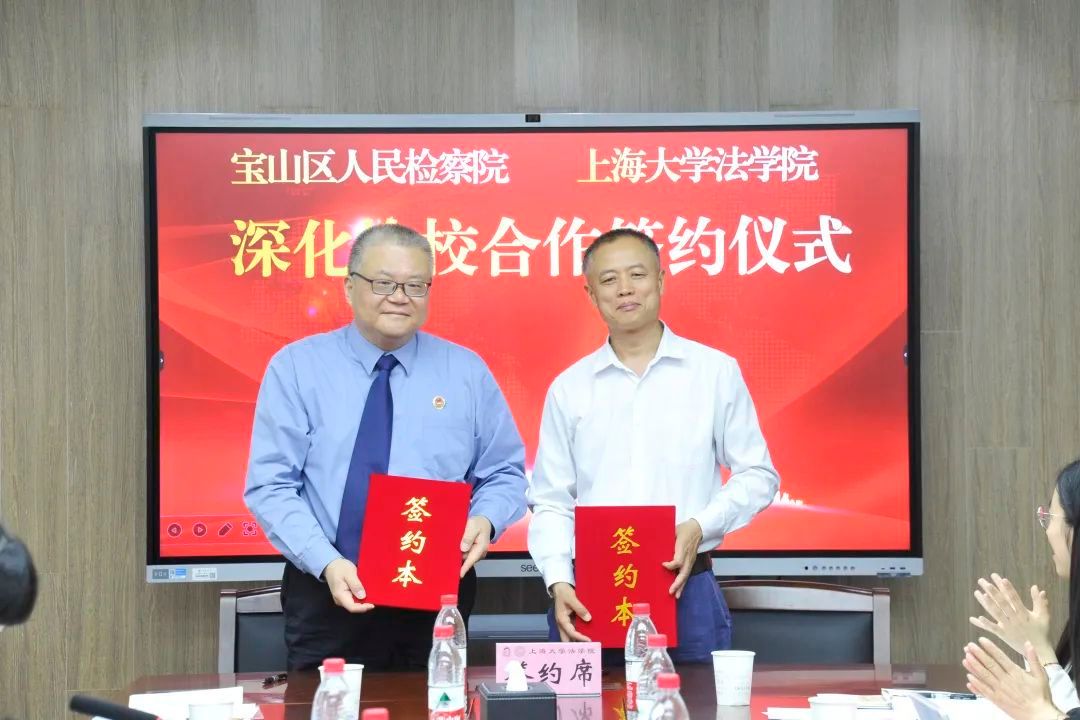 宝山区人民检察院党组成员、副检察长王强与beat365唯一官网法学院党委副书记、院长李凤章签订《上海市宝山区人民检察院beat365唯一官网法学院关于进一步深化检校合作的实施意见》。