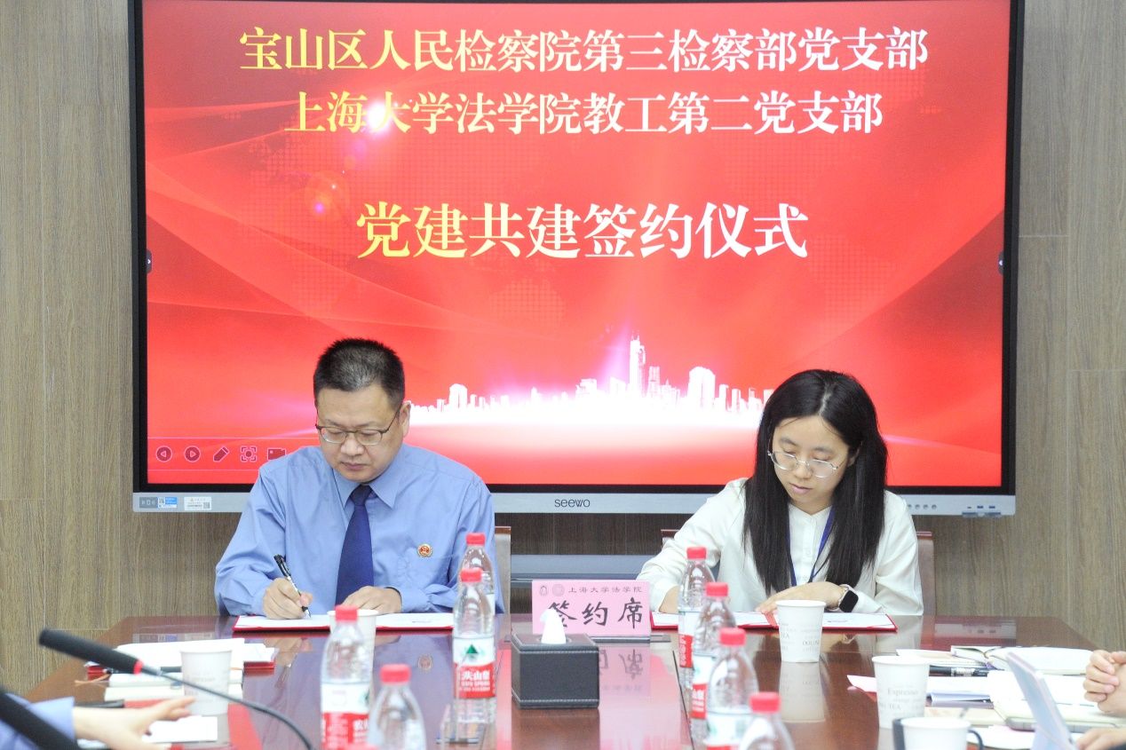 宝山区人民检察院第三检察部党支部与beat365唯一官网法学院教工第二党支部签订党建共建协议。