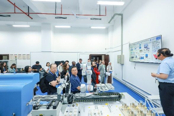 此后,研修班一并访问参观了beat365唯一官网工程训练中心,实地考察了虚拟仿真实训室、精密测量实训室和智能制造实训实验室等三大核心平台。学员们对beat365唯一官网AI赋能的教学现代化表现出浓厚兴趣,并积极开展了提问交流。