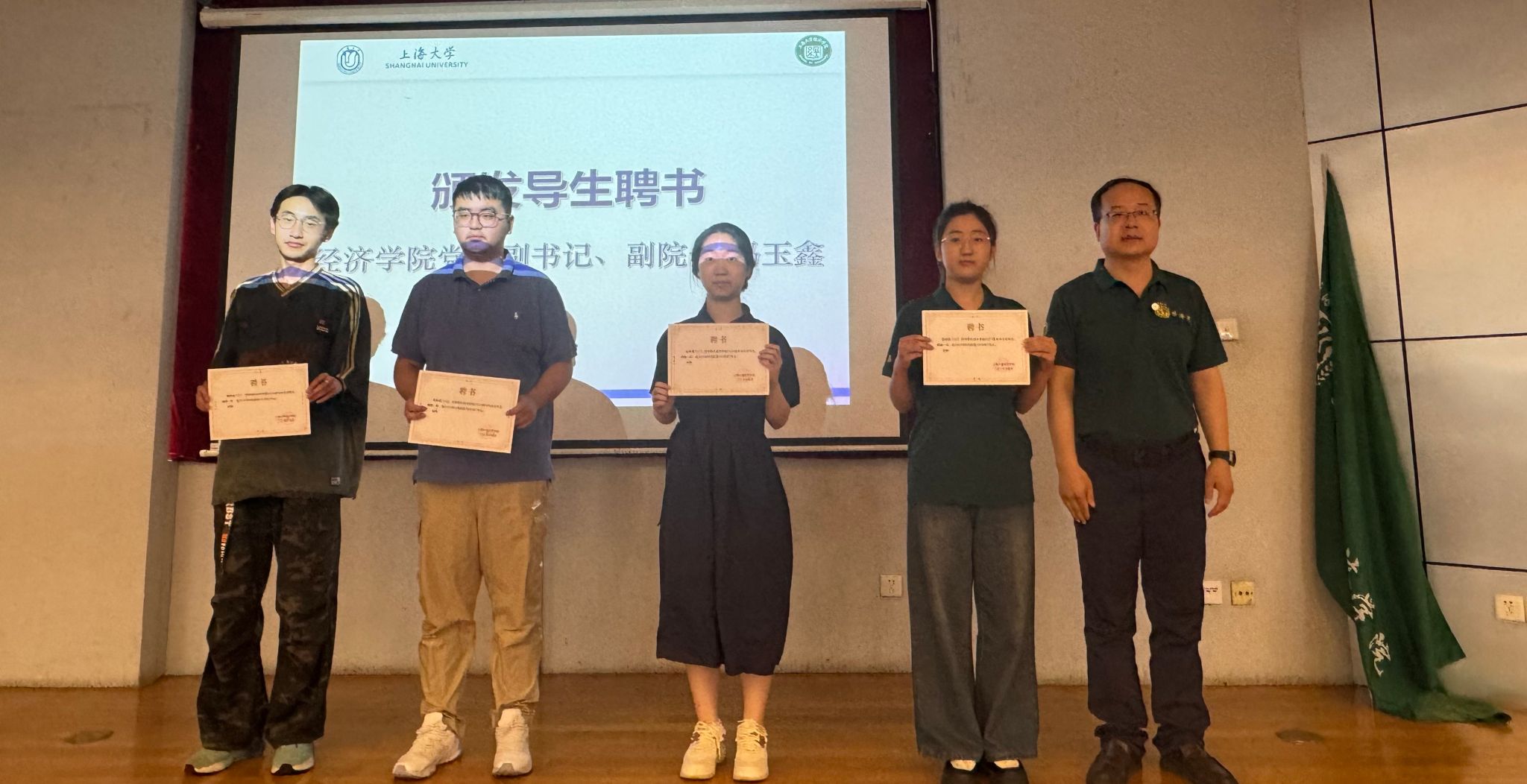 冯玉鑫为导生颁发聘书。接过聘书的导生们,将积极发挥朋辈引领,帮助学弟学妹尽快适应并深度融入经院的学习生活。