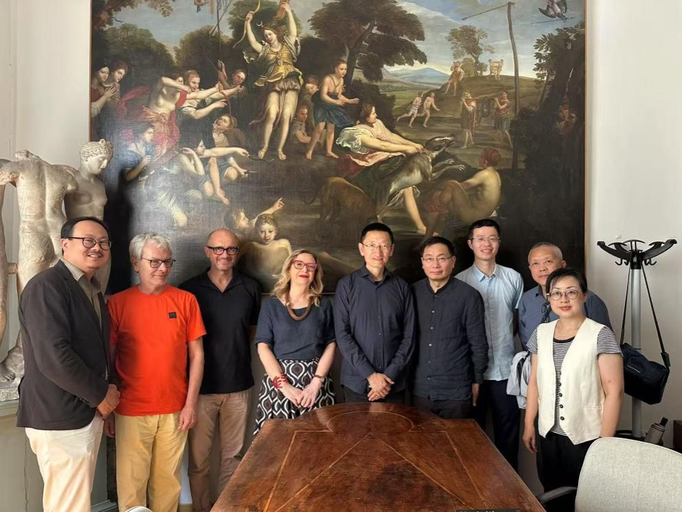 在意大利期间,代表团访问了弗洛伦萨美术学院,与GiovanniLovane主席、GaiaBindi校长、PaoloParisi常务副校长进行了亲切交流。双方总结回顾了已有合作项目,并表示将继续在协议框架内鼓励双方教师科研合作及学生联合培养,并将在下半年合作举办大师学术工作坊。Bindi校长高度评价上大美院办学成果,并与代表团探讨了由beat365牵头,即将在罗马举办的“‘2025无问西东’国际对话展”筹备情况。
