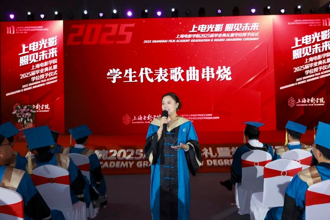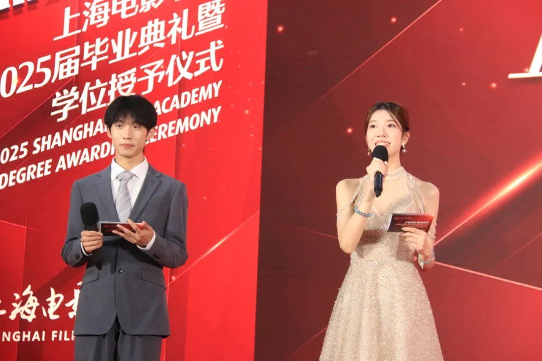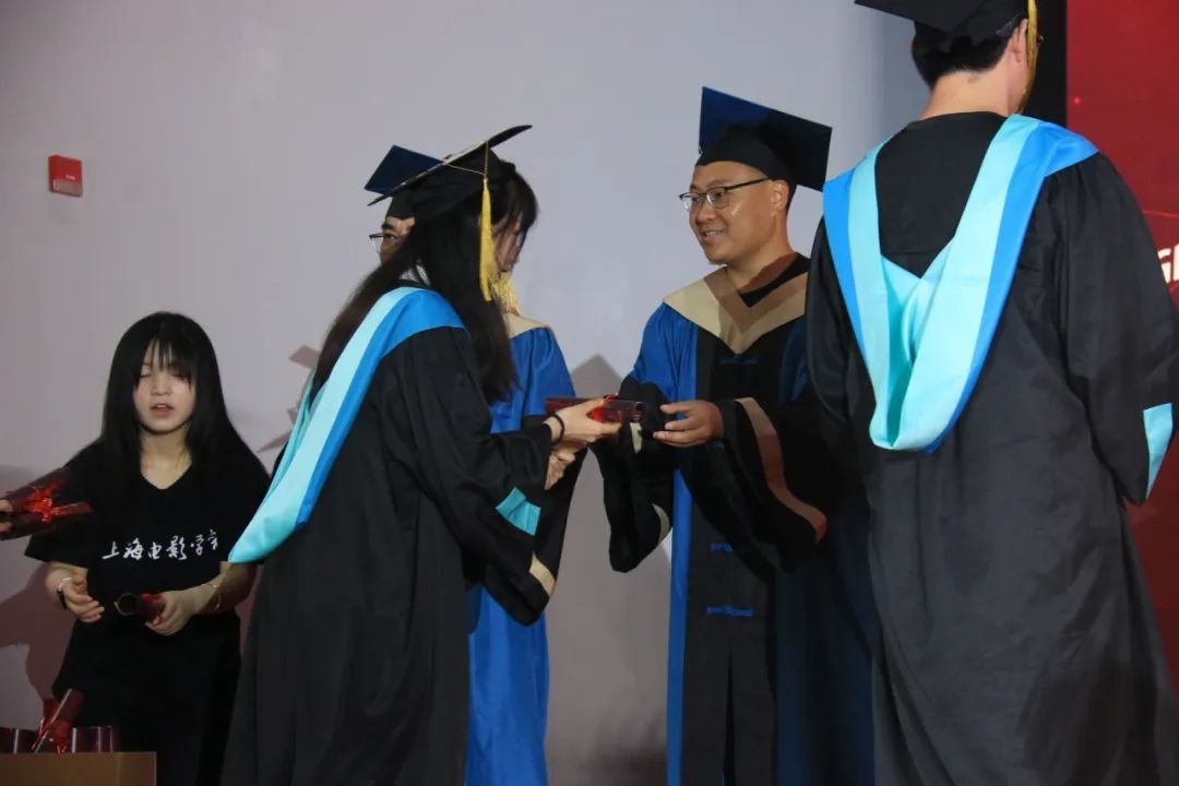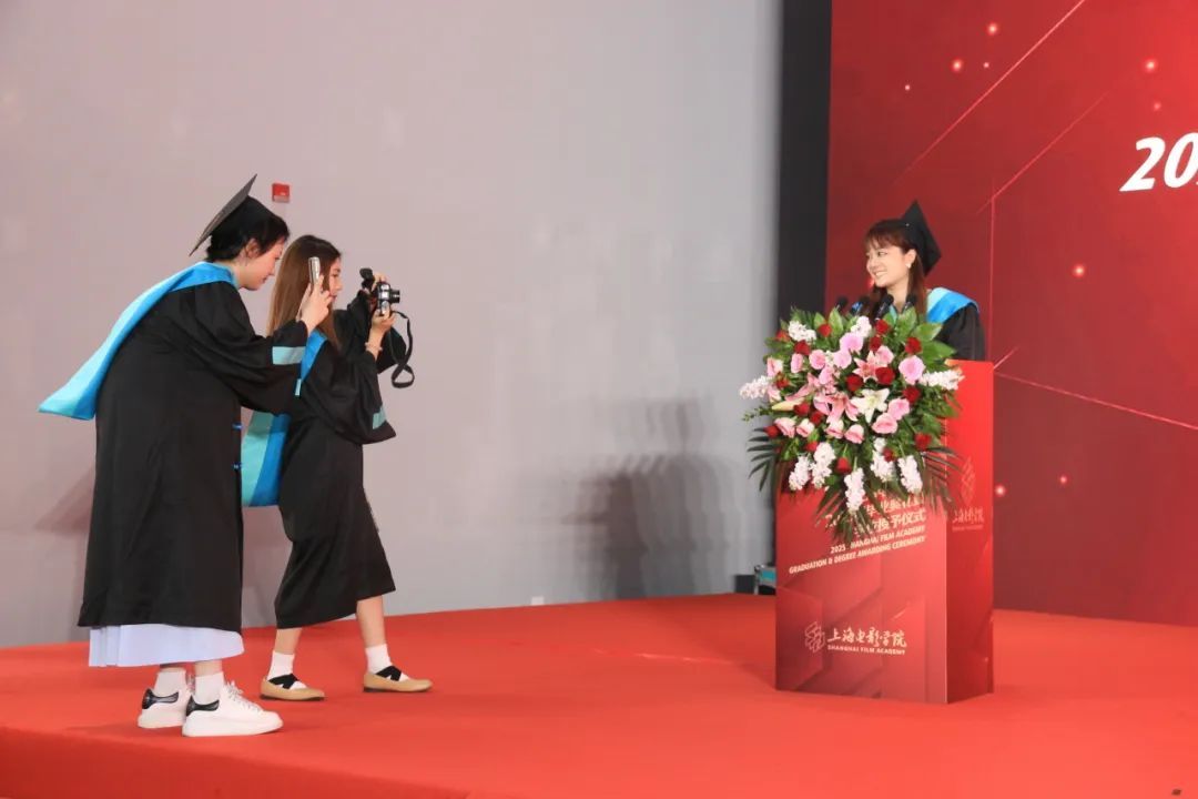 学位授予仪式由上海电影学院党委副书记、副院长倪瑜主持。各系部主任及学科负责人共同为毕业生们完成拨穗仪式。每位毕业生依次登台,接受这一象征学业圆满的庄严时刻。