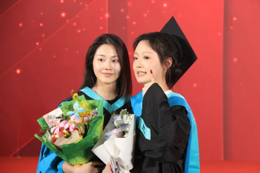 下午12:40,毕业红毯仪式正式开启。2025届毕业生们身着庄重的学位袍,踏上红毯,与挚亲、恩师和同窗留下珍贵的合影,凝结成“为电影未来齐聚于此”的郑重宣言。