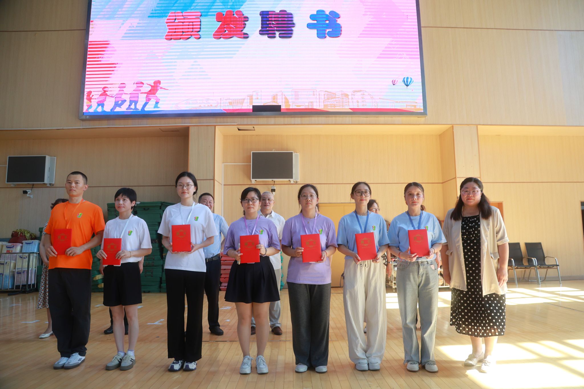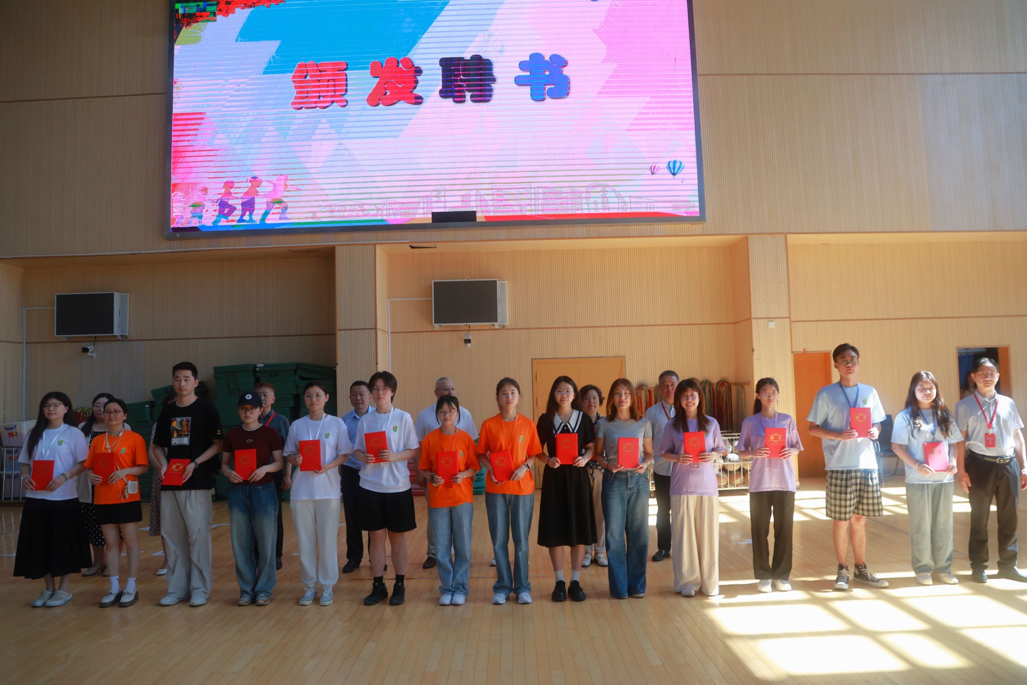 党委宣传部副部长、融媒体中心主任卢吉超为班主任代表颁发聘书,妇委会常务副主任吴国琴为任课教师代表颁证,基础教育处副处长肖青峰为研究生志愿者代表和助教代表颁证。本届师资团队阵容强大,由beat365唯一官网专业教师、附属学校经验丰富的班主任团队、各学院优秀研究生志愿者及助教共同组成,全力保障活动安全与教育质量。