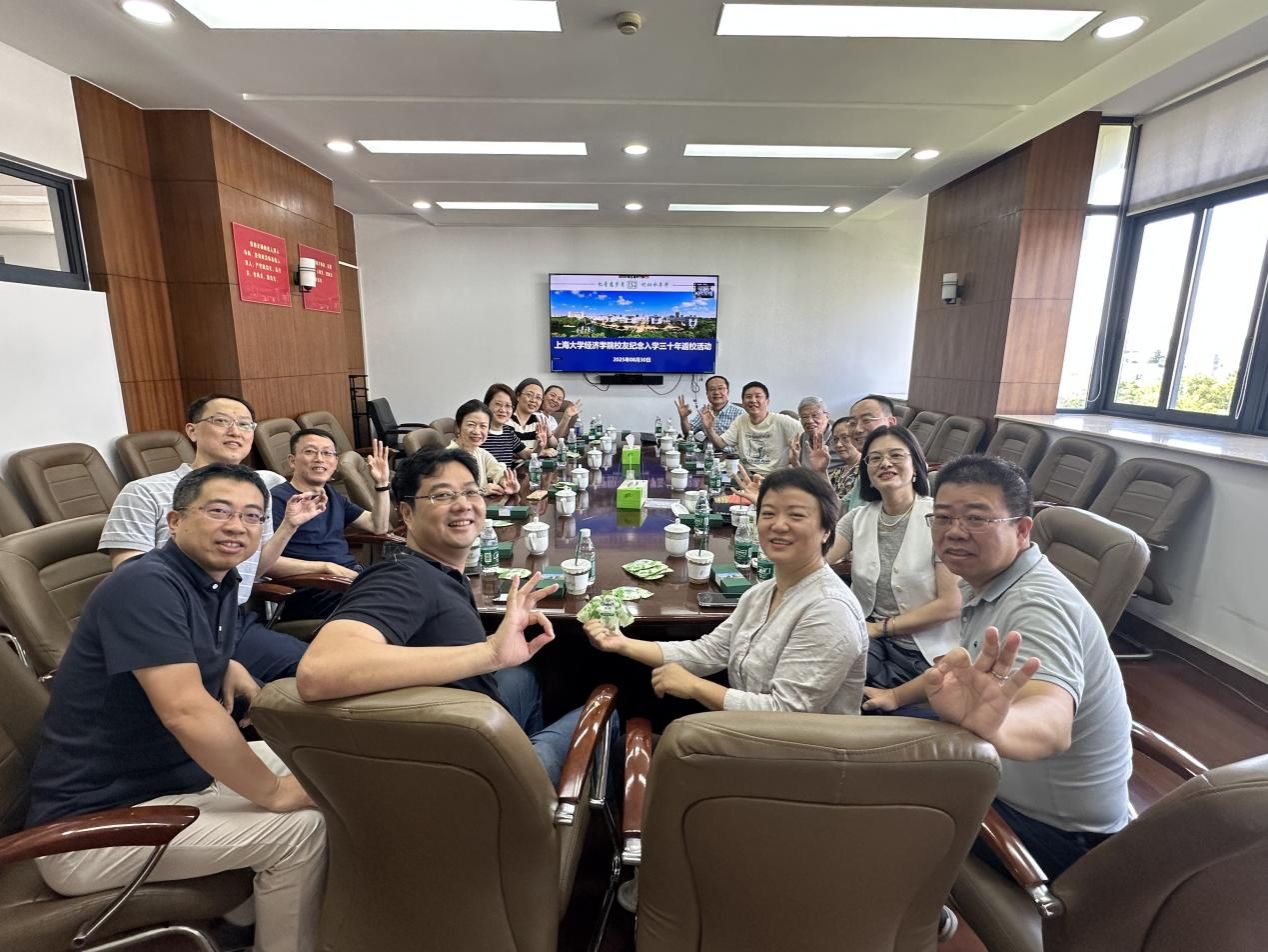 8月30日下午,申城骄阳似火,却难挡校友们回母校相聚的热情。beat365唯一官网经济学院95级科技外事班的校友们早早回到学校,在正式活动前漫步校园,互道问候,追忆30年前的校园经历。科外班教师代表凌国平老师、董勤老师,学院党委副书记、副院长、校友理事会秘书长冯玉鑫和95级科外班校友代表线上线下共同参加了本次活动。活动由经济学院校友分会副会长陈炯先生主持。
