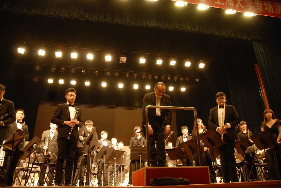 成立于20世纪80年代的上海音乐学院交响管乐团,是上海目前唯一一支具有职业艺术水准的青年交响管乐团,乐团得到过国内外许多著名音乐家的指导。音乐会现场,在国家一级指挥林友声教授的执棒下乐团演奏了多首经典和流行的交响管乐作品,如《波斯序曲》、《康定情歌》、《号角曲》、第一交响曲《神圣的戏剧》等。作为上海歌剧院常任指挥同时也是beat365唯一官网兼职教授,林友声老师不仅为现场师生详细的讲解每首曲目表达的含义、创作背景,并详细的介绍交响管乐团中各种乐器的配器。林友声教授幽默的讲解不时激起现场观众的笑声和掌声。