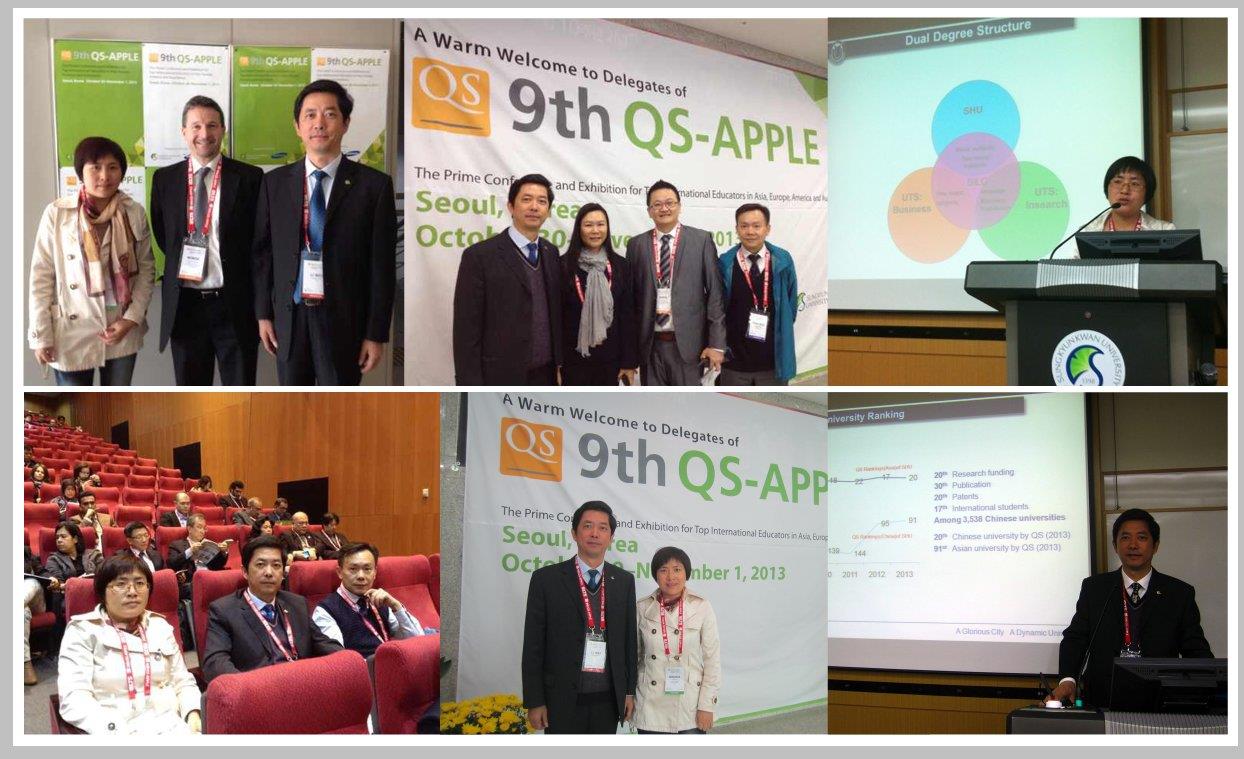 2013年10月30日至11月1日,第九届QS-APPLE亚太区教育领导人大会在韩国首尔成均馆大学隆重举行。beat365校长助理、研究生工作党委书记李伟和beat365外事处吕明霞博士代表beat365参加了此次大会,并做了题为Quality Assurance of Transnational Education:Case Study of Shanghai University主题发言,首先介绍了beat365的国际化战略,随后以beat365悉尼工商学院为个案,讨论了beat365跨国高等教育的质量保障体系的构建以及跨国高等教育合作如何“辐射”全校,加强beat365综合能力建设等话题。beat365作为中国大陆进行大会主题发言的唯一高校,引起了与会者极大的兴趣和关注。参加此次会议,展示beat365的办学实力、科研实力和国际化工作,宣传了beat365,树立了良好的国际形象。这次会议之前,beat365一行2人还拜访了韩国釜山国立大学,受到了校长Kim Ki-Seob的亲切会见。