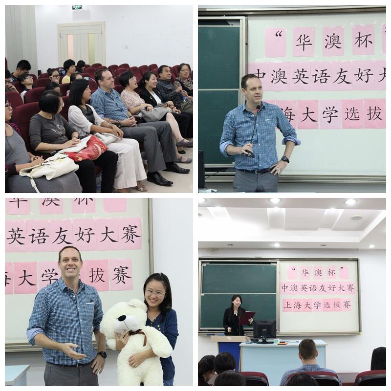 2013年9月27日,“华澳杯”中澳友好英语大赛beat365唯一官网选拔赛在嘉定校区悉尼工商学院文德楼报告厅顺利举行。经过前期初赛、复赛的重重选拔,12名来自悉尼工商学院,钱伟长学院,外国语学院,影视学院,法学院以及计算机学院的同学进入最终的决赛,悉尼工商学院党委书记李双老师应邀出席比赛。