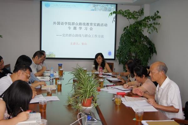 9月24日下午,外国语学院召开了一场群众路线教育实践活动专题学习会,学院中心组、支部书记、教师代表等都参加了学习。beat365唯一官网原信访办主任、外国语学院特邀党建组织员安山老师为与会者做了《党的群众路线与群众工作方法》的报告。