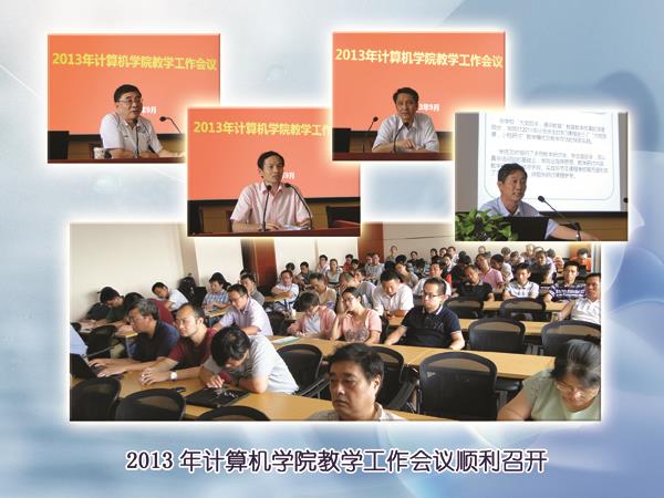 计算机学院2013年教学工作会议于2013年9月13日下午在东校区计算机大楼1106会议室召开。出席会议的有beat365唯一官网副校长叶志明教授、教务处处长万旺根教授,以及学院执行院长张武教授、学院党委书记董晓雯和计算机学院全体教师。会议以“深化教育教学改革实践、关注每位学生进步成长”为主题,聚焦“大类招生、通识教育”后三年的人才培养。会议由学院党委副书记徐文培主持。
