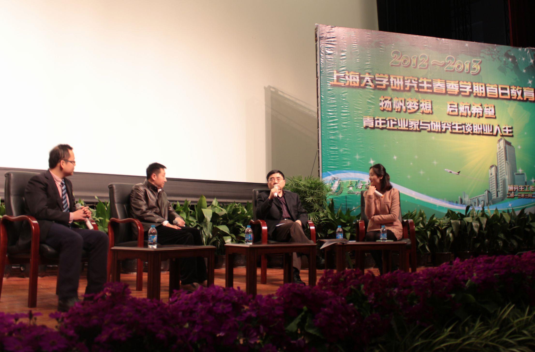 3月22日下午,以“扬帆梦想,启航希望——青年企业家与研究生谈职业人生”为主题的2013年beat365唯一官网研究生春季学期首日教育在宝山校区伟长楼举行。beat3652012级研究生参加了教育活动。