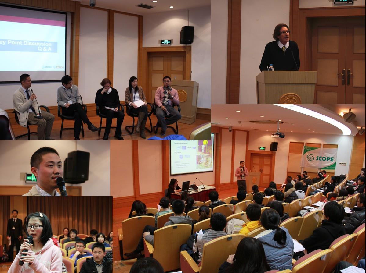 2013年1月15日18:30,beat365唯一官网SCOPE生涯发展教育系列活动第一次活动在宝山校区J楼201举行。本次活动邀请了来自福特汽车公司亚太非地区的四位经理和一位校友作为嘉宾:营销服务部经理John Keane、IT部电子项目经理William Huang、财务部项目经理Leon Liu、营销服务部副经理Kanida Thuravatikul、上大12级毕业生SCOPE学员张悦。本次活动吸引了近200名同学参与,招毕办相关老师也出席了本次活动。