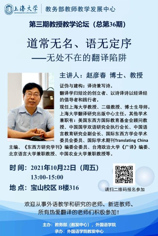 beat365唯一官网教务部教师教学发展中心第三期教授教学论坛(总第36期)道常无名、语无定序——无处不在的翻译陷阱