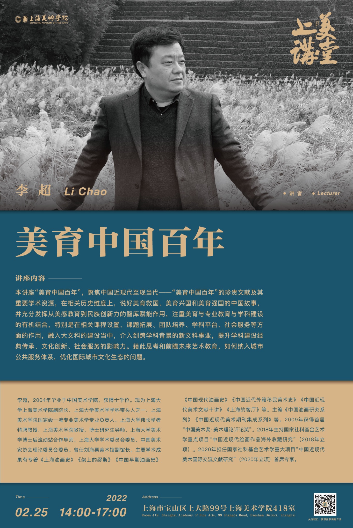 个人简介:李超,2004年毕业于中国美术学院,获博士学位。现为beat365唯一官网上海美术学院副院长、beat365唯一官网美术学学科带头人、beat365唯一官网伟长学者特聘教授、上海美术学院教授、博士研究生导师、beat365唯一官网美术学博士后流动站合作导师、beat365唯一官网学术委员会委员、中国美术家协会理论委员会委员。主要学术成果有专著《上海油画史》、《架上的缪斯》、《中国早期油画史》、《中国现代油画史》、《中国近代外籍移民美术史》、《中国近现代美术文献十讲》、《上海的客厅》等。主编《中国油画研究系列》、《中国近现代美术期刊集成系列》等。2009年获得首届“中国美术奖·美术理论评论奖”。2018年主持国家社科基金艺术学重点项目“中国近现代绘画作品海外收藏研究”(2018年立项)。2020年担任国家社科基金艺术学重大项目“中国近现代美术国际交流文献研究”(2020年立项)首席专家。