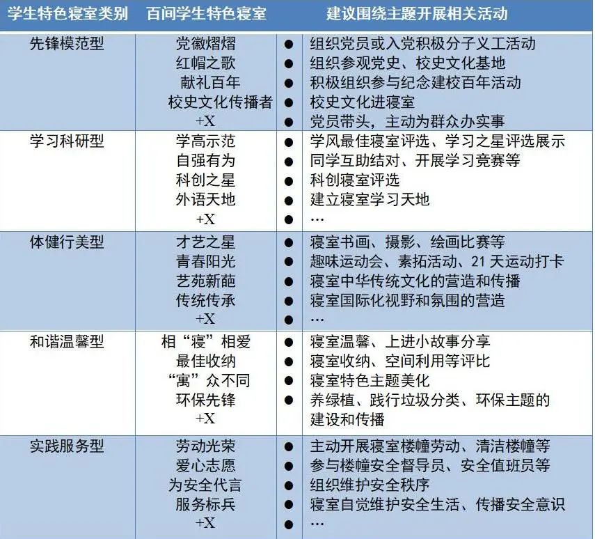 本次评选活动推出五大类别学生特色寝室,鼓励同学加强团结协作,发挥积极创造性,创建符合主题、具有创新性、个性化的“X 型学生特色寝室”,引导学生从寝室生活开始,凝聚同窗情感,树立劳动意识,打造积极健康向上的寝室文化,共创美好寝室氛围,为建设美丽校园贡献青春力量,彰显百年学府学子风采。